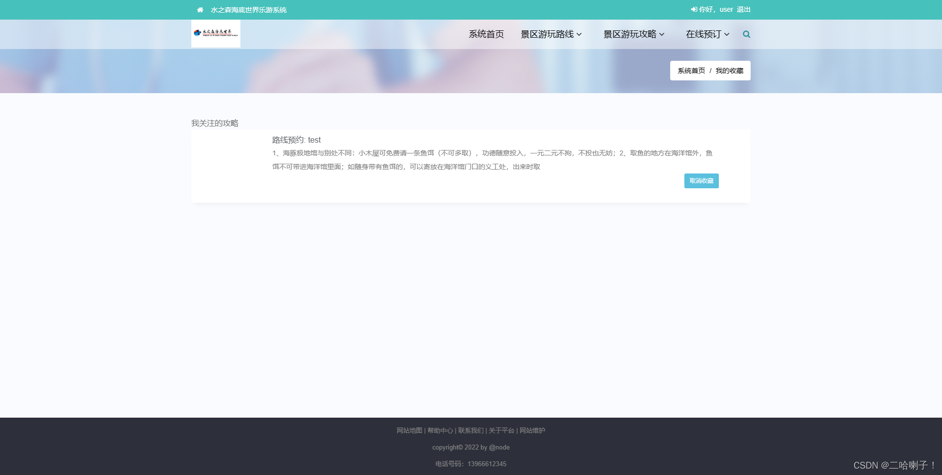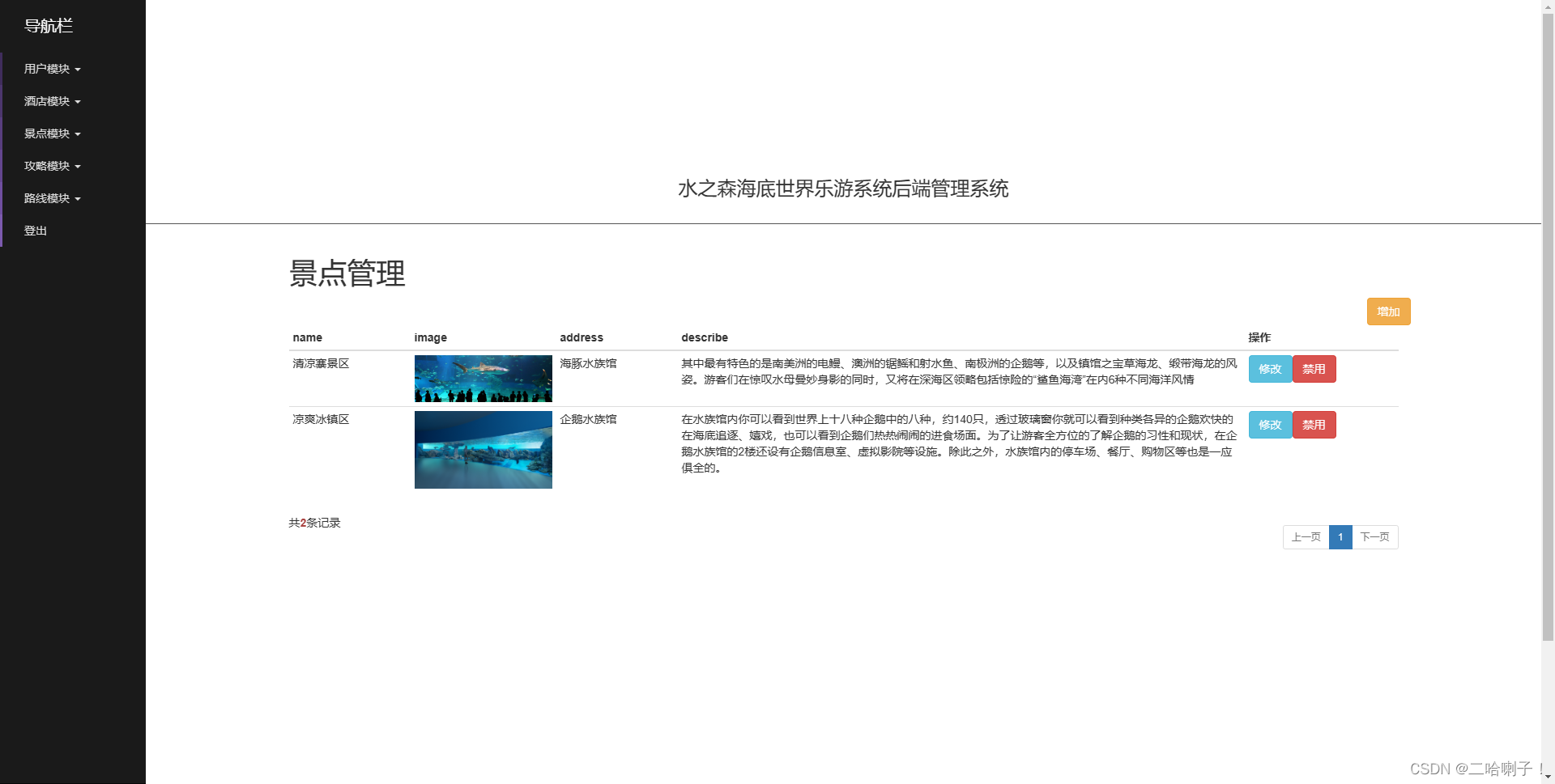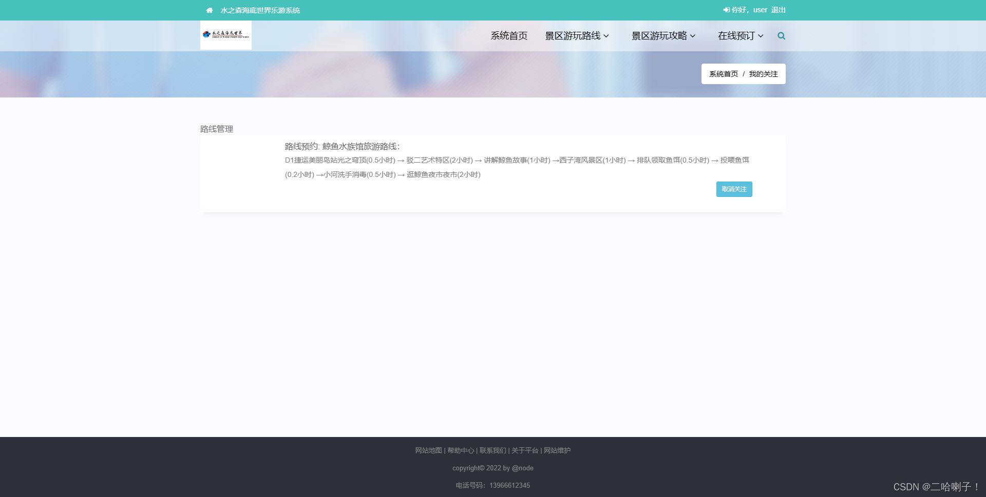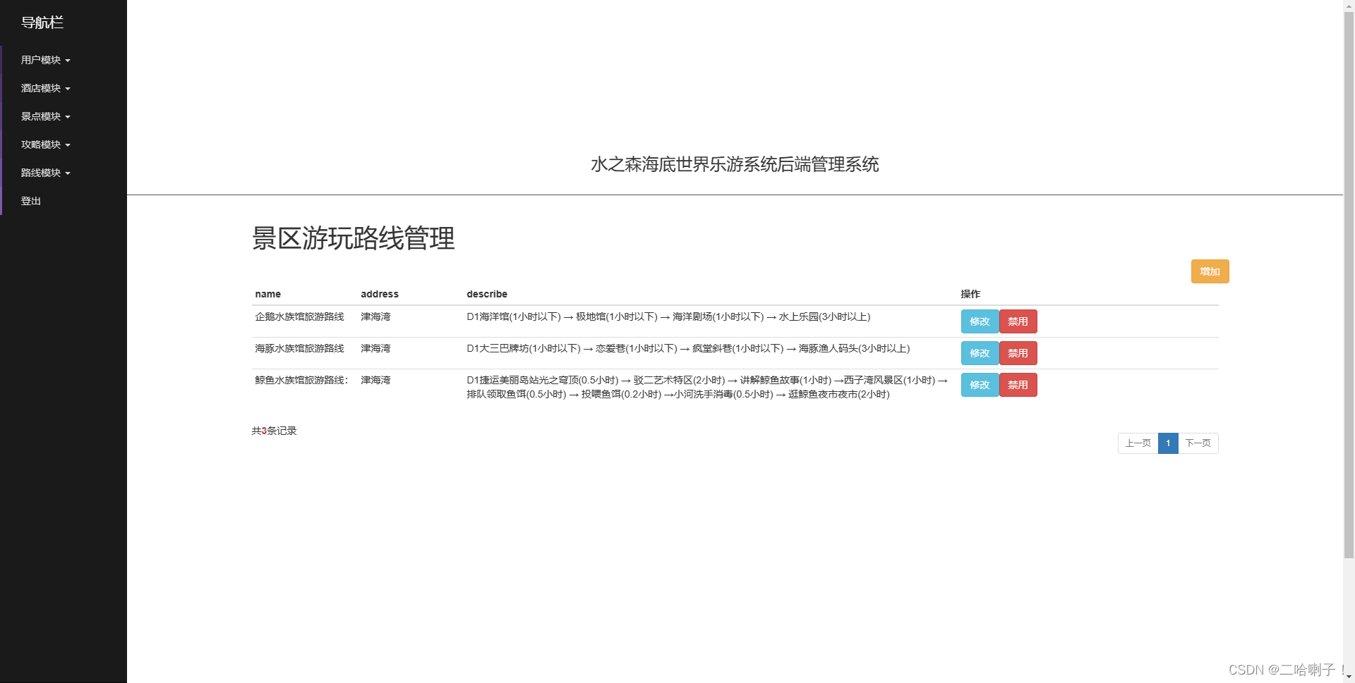 (2)海底世界游玩路线管理(游玩路线、关注的路线的增加,删除,查找,修改)