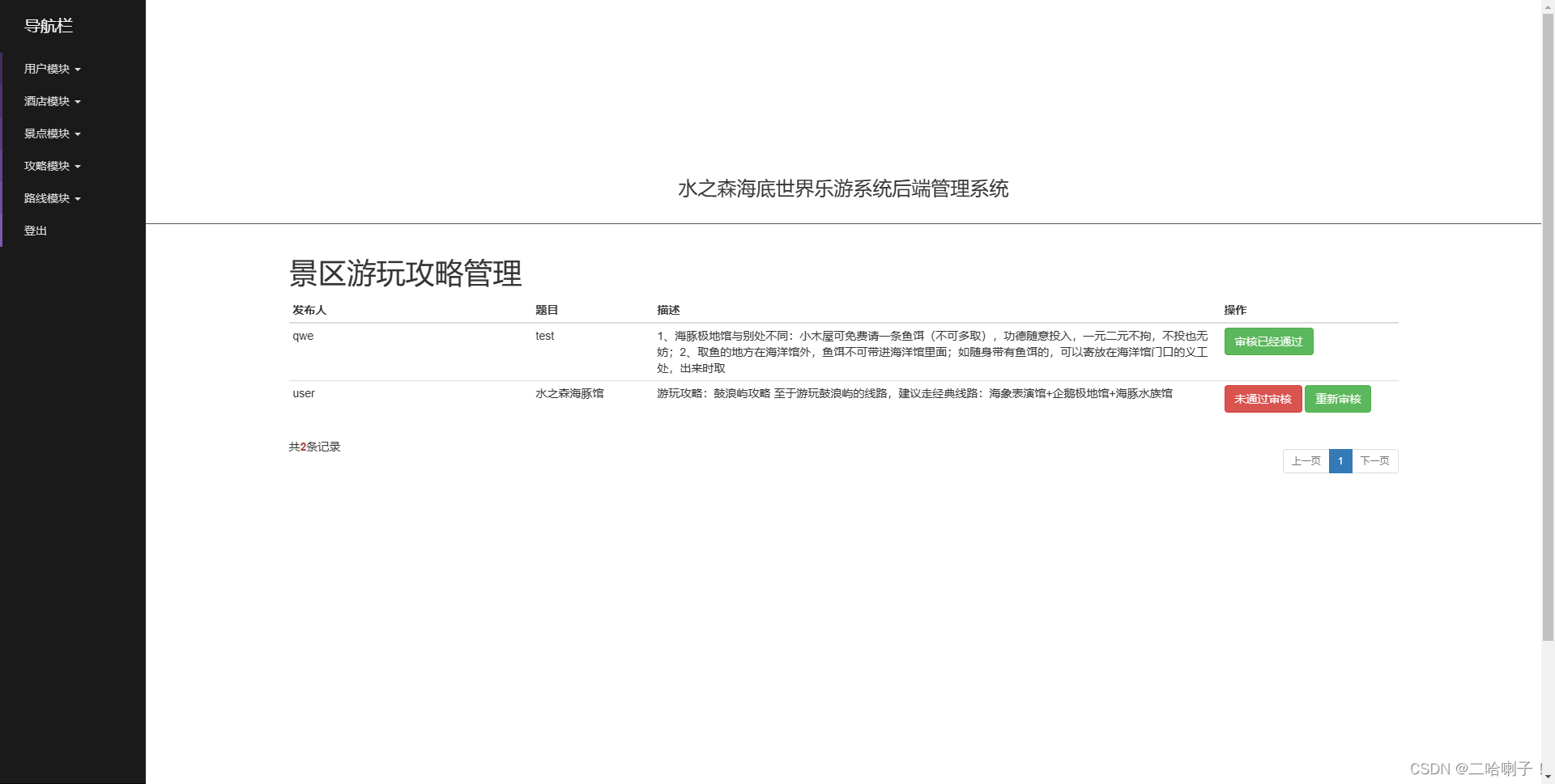 (10)攻略管理(管理员对景区游玩攻略作出审核管理)