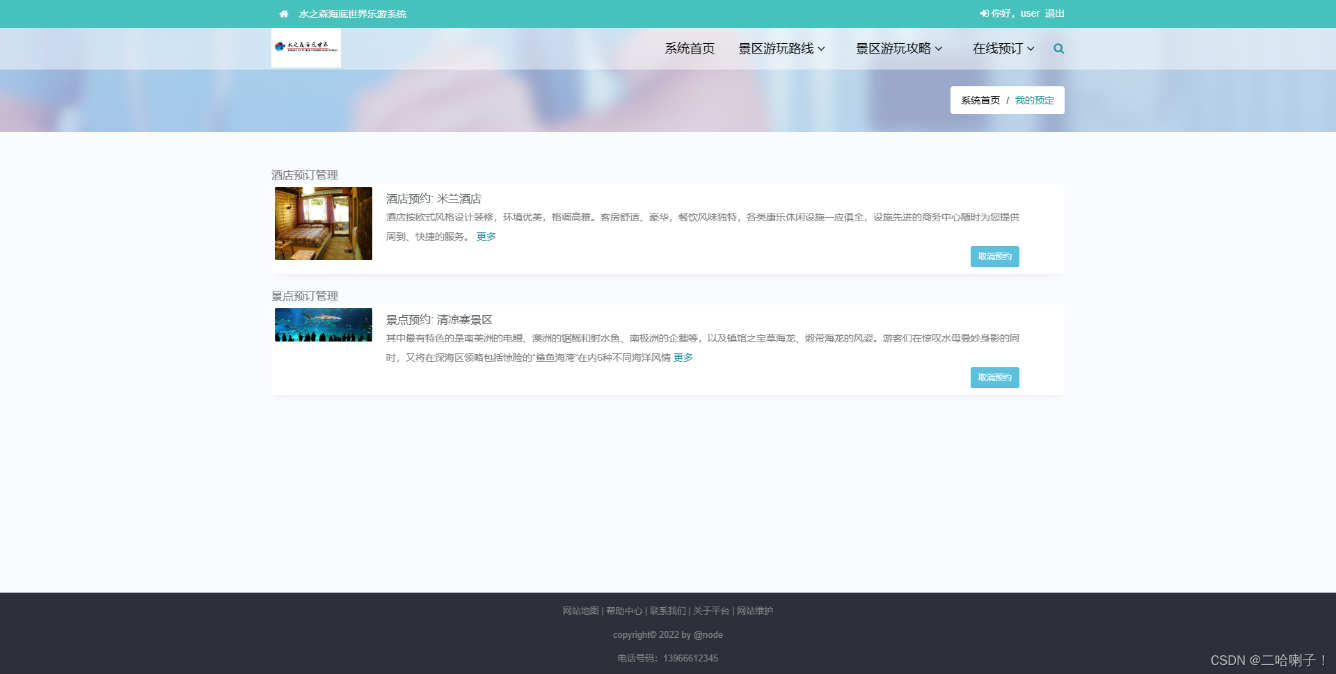 (4)在线预订管理(游客可自行预订酒店、景区,可显示自己的预定信息等)