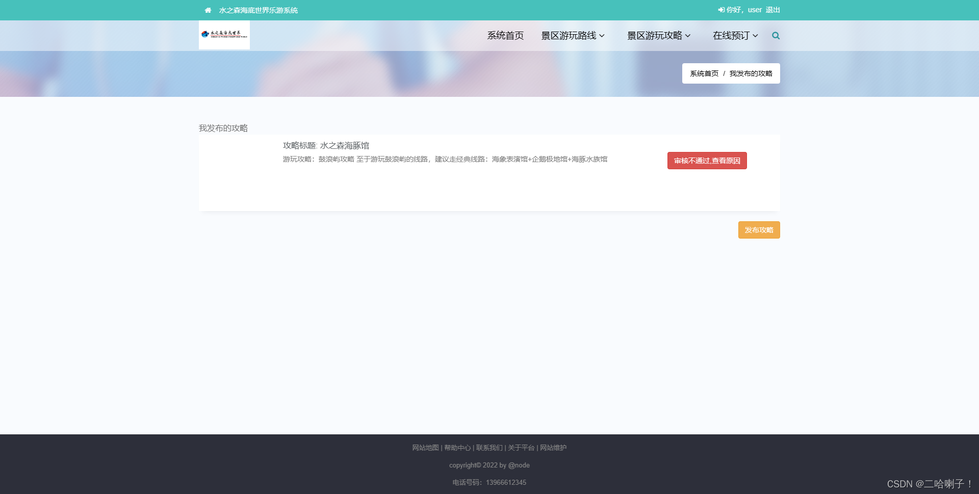 (3)海底世界游玩攻略管理(游客发布游玩攻略或关注某条攻略)