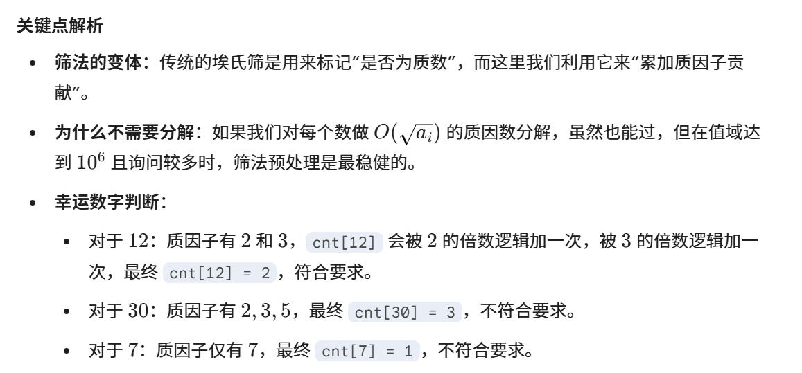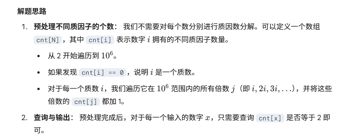 // cnt[i] 存储数字 i 的不同质因子个数