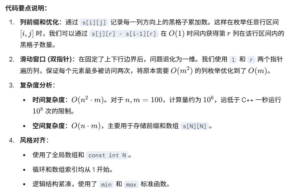 int s[N][N]; // s[i][j] 表示第 j 列前 i 行黑格子的数量(列前缀和)