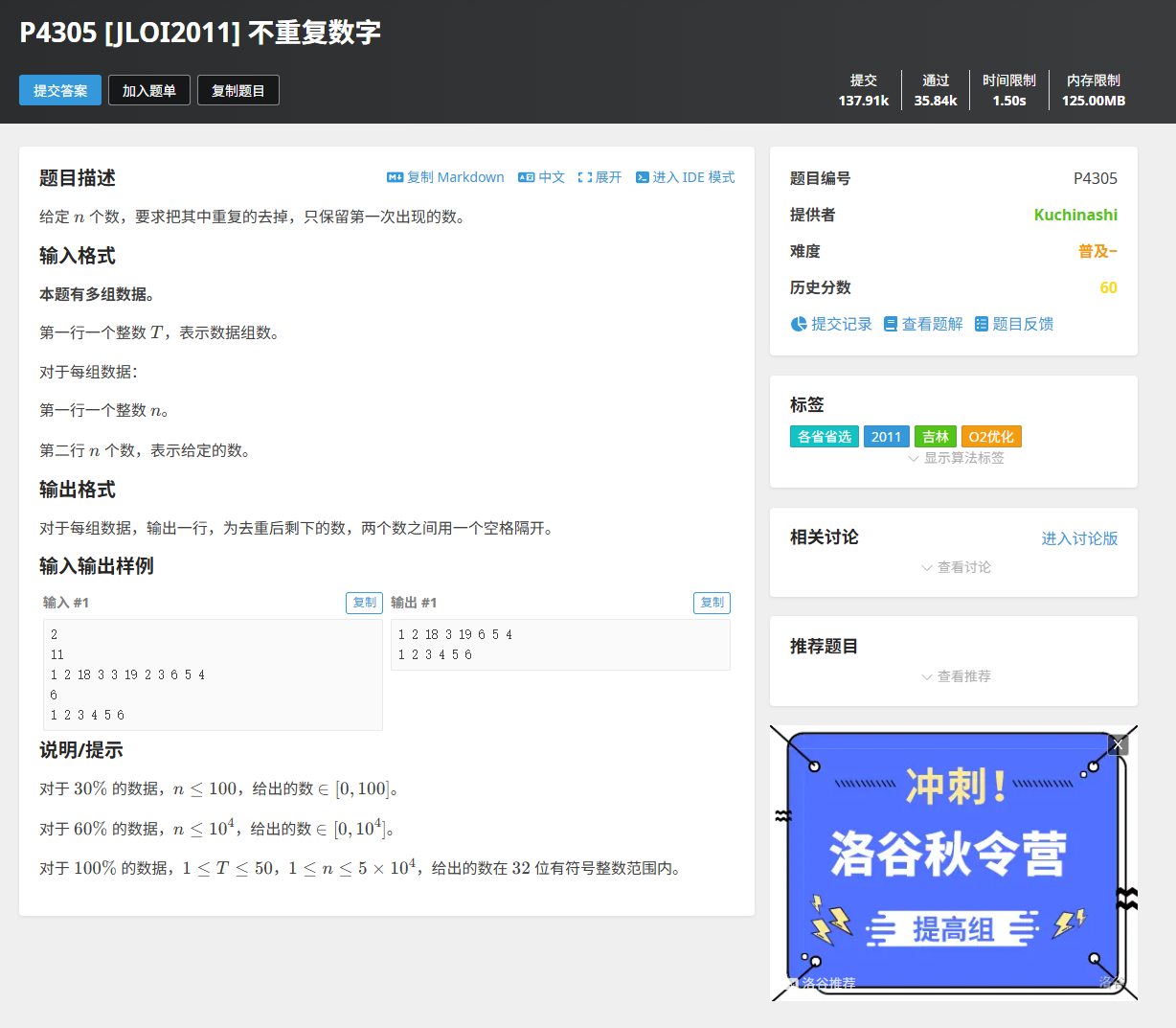 用这个代码去提交之后,会发现有4个测试用例超时了,这是因为cin、cout会导致时间开销过大,所以把cin、cout都换成scanf和printf即可