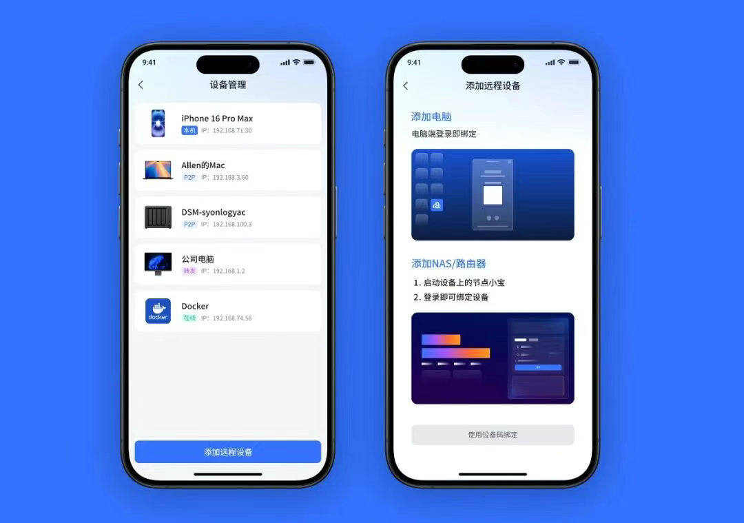 登录即绑定,一步到位:在你的 Mac 上登录账号,家中的 NAS、公司的 Windows 电脑等设备将自动出现在列表,无需手动配置任何网络参数。