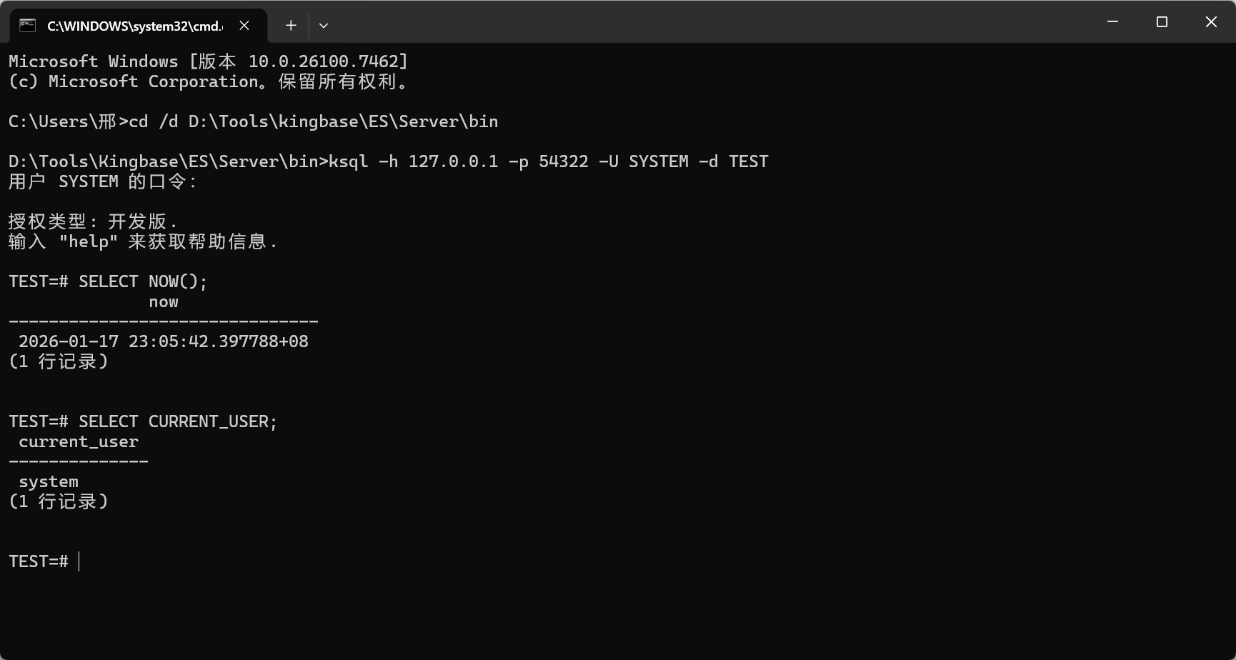 这里我给大家准备了一套"复制粘贴就能跑"的脚本,在 Windows 本地金仓数据库实例上,通过 ksql 命令行搞定这些事: