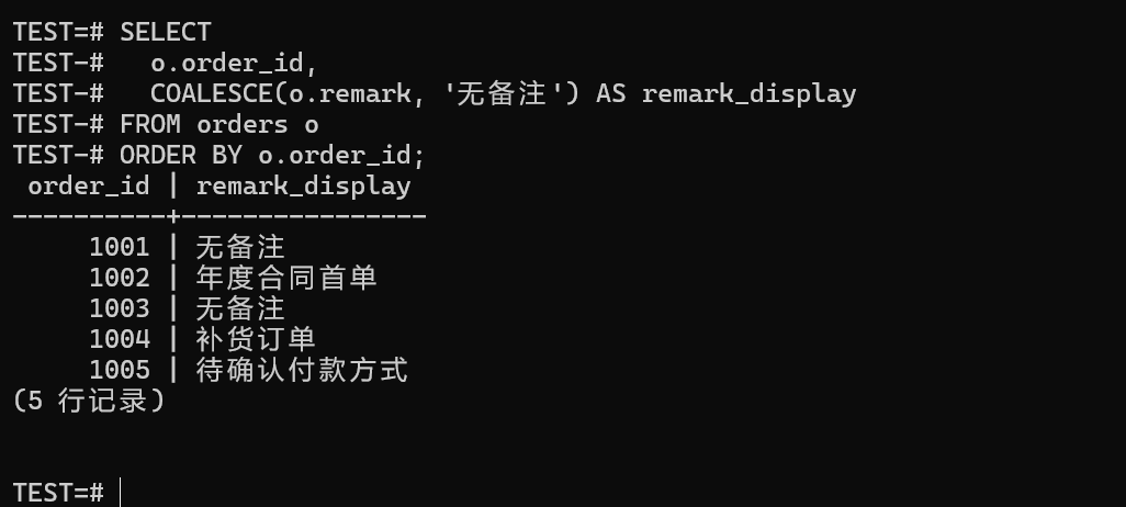 6.3.3 用 COALESCE 处理空备注(NVL 场景的等价改写)