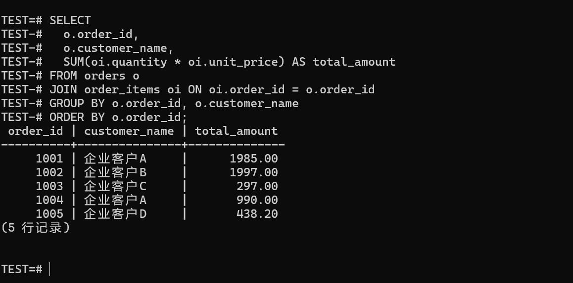 - 执行三类典型查询(金额汇总、状态映射、空值处理)