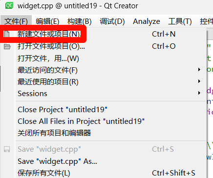 在Qt Creator项目中新建文件。