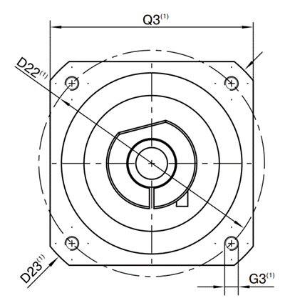 例如图4-6是纽卡特(Neugart)PLE系列行星减速器的工程设计图,包含了减速器的3个关键视图(左侧俯视图、中间主视图、右侧输出端视图),清晰标注了安装孔位、轴径、法兰规格等核心尺寸信息,方便工程师匹配电机、机器人关节等部件的安装接口。