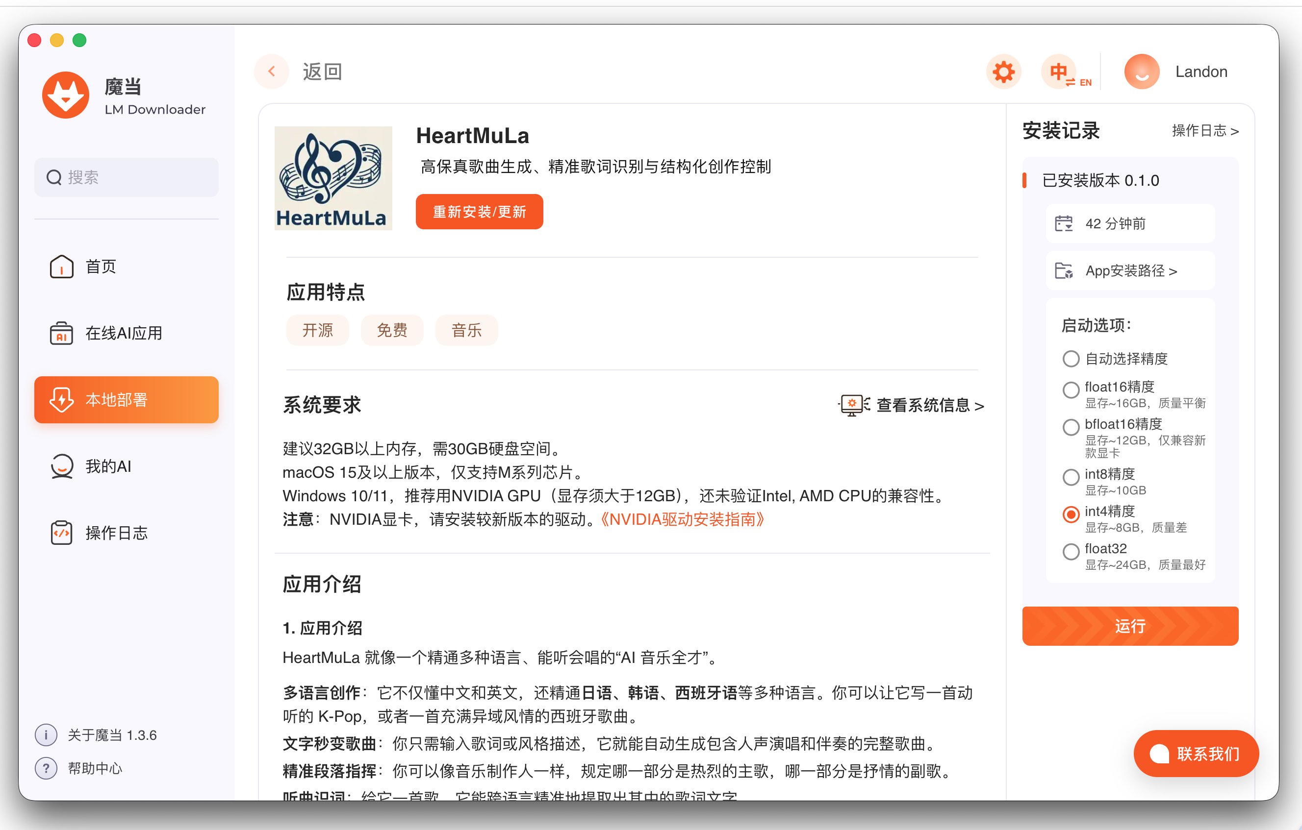 可以使用魔当(LM Downloader)在本地一键部署 HeartMuLa,整个流程完全自动化,适合新手,同时支持 Mac 和 Windows。
