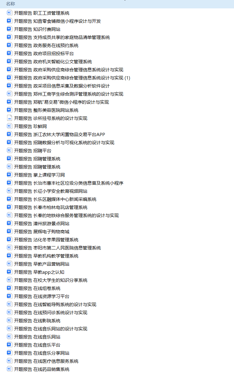以上是H同学的毕业设计答辩过程,如果你现在还没有参加答辩,还是开题阶段,已经选好了题目不知道怎么写开题报告,可以下面找找有没有自己符合自己题目的开题报告内容,列表中的开题报告都是往届真实的开题报告可参考