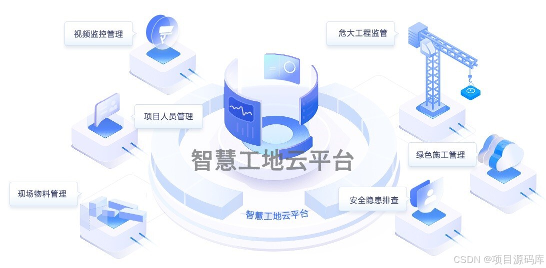 数字工地云平台深度融合物联网、大数据、人工智能及云计算等先进技术,为施工管理提供覆盖"人、机、料、法、环"全维度的综合服务,具体包括人员安全管理、设备安全管理、施工安全监管、物联监测、视觉AI分析、质量管理、物资管理、进度管理及BI大数据可视化等核心功能模块,全面助推工地管理向数字化、智能化转型。