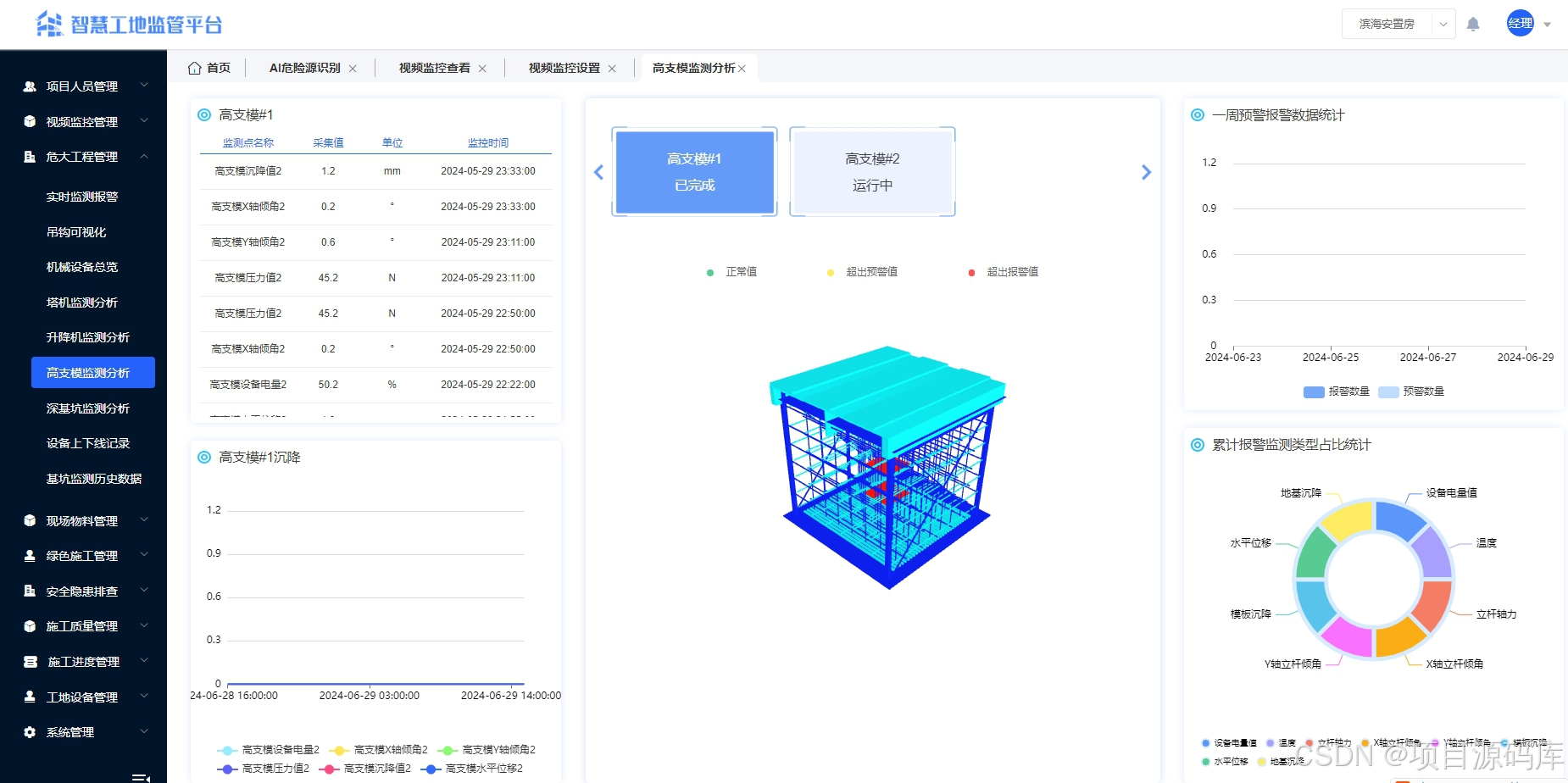通过安装在模板支架上的智能传感设备,实时监测立杆轴力、水平位移、倾斜角度及沉降等参数。系统结合结构计算模型进行实时安全分析,一旦数据超限立即发出声光报警,并可联动现场广播、手机消息等多类通知方式,有效预防高支模坍塌事故的发生。