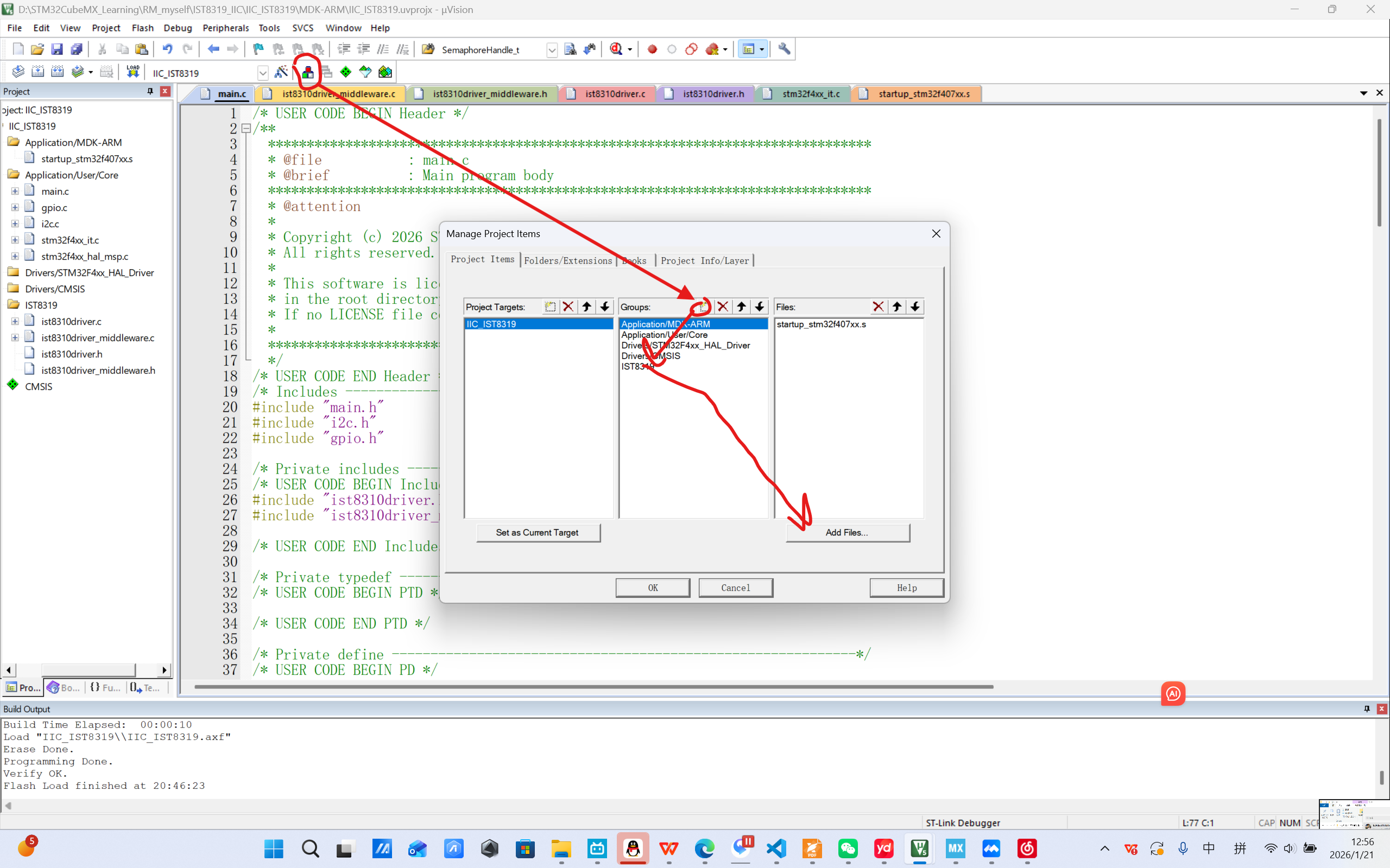 然后添加好文件后我们要在main.c文件里添加