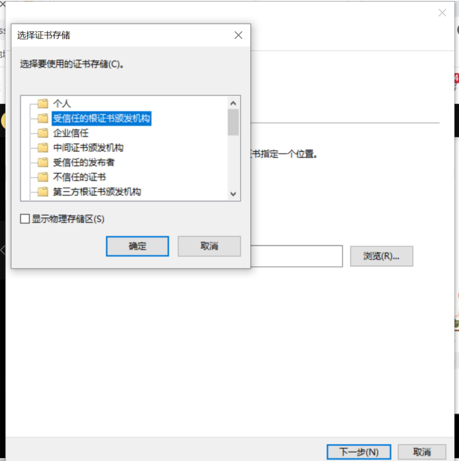 这里由于用的笔记本截图快捷键问题,没法截取,这里截取证书安装,证书安装一直下一步就可以