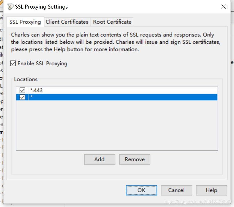 1.点击顶部菜单栏【Help】-->选择【SSL Proxying】,点击【install Charles Root Certificate】安装Charles根证书即可;
