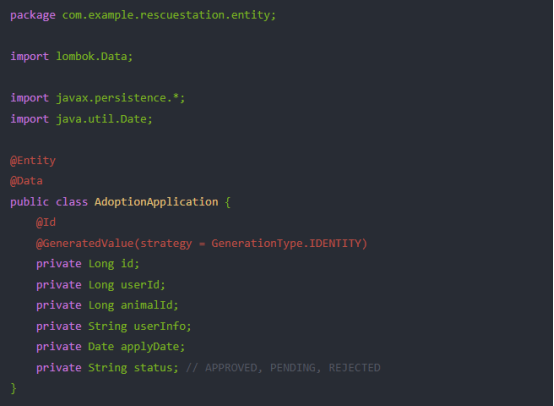 志愿者管理: 创建 Volunteer 实体并实现报名与审核功能类似于用户和动物的管理。