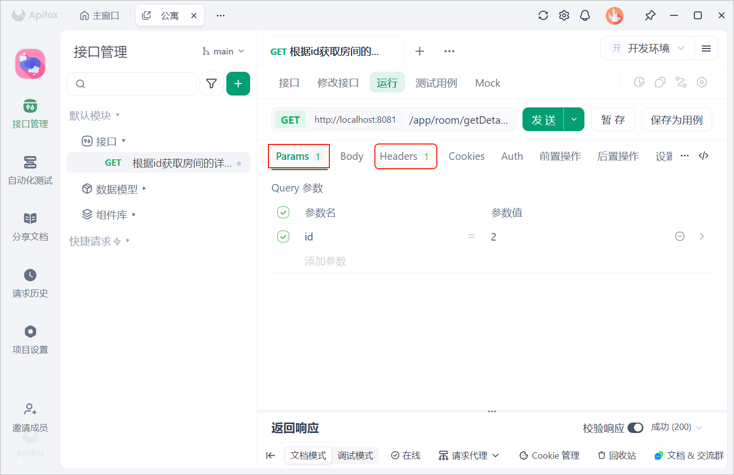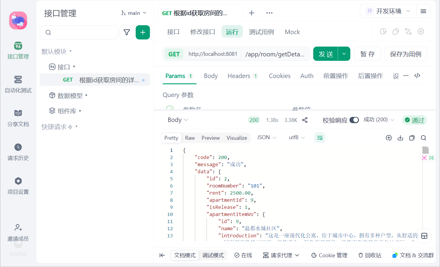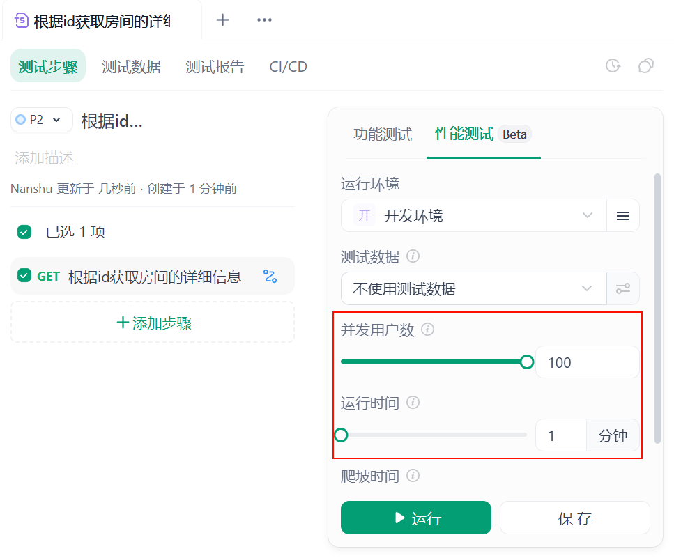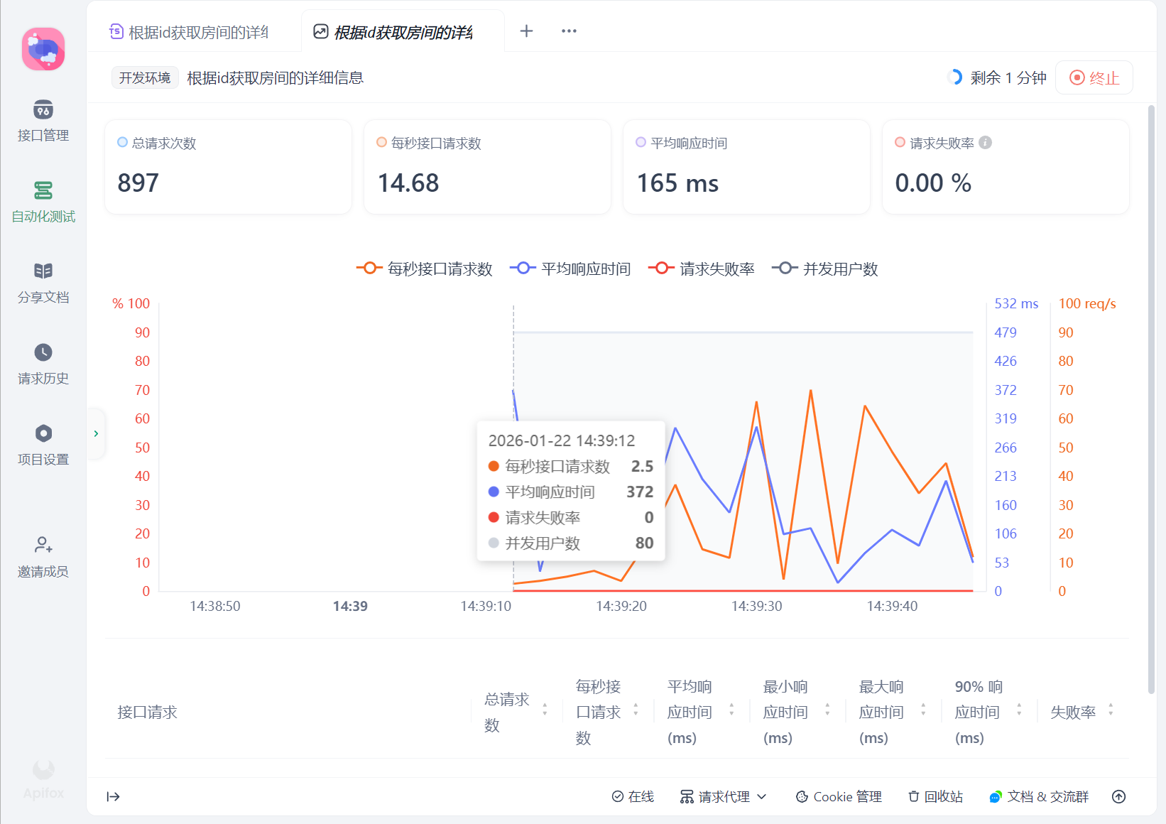 Apifox对根据ID获取房间详情这个接口进行压力测试
