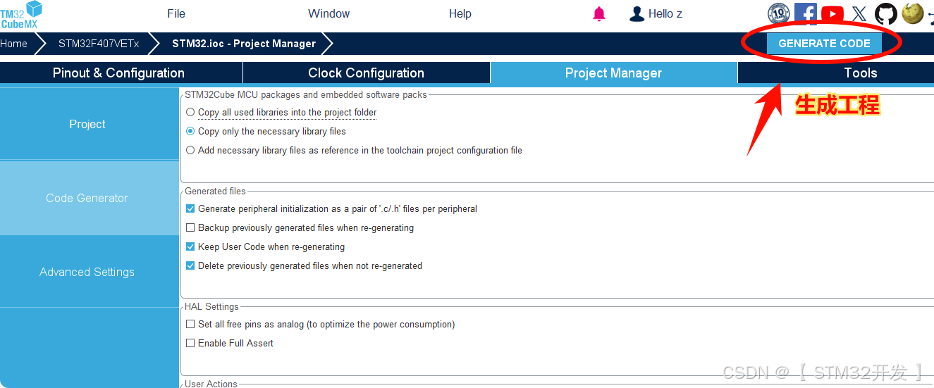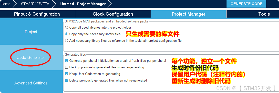 点击 "Generate Code" 后,工程中会出现几个关键文件: