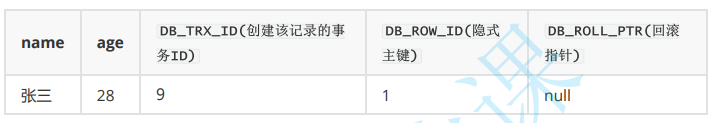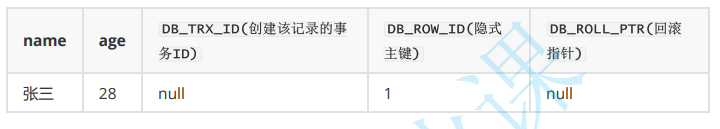 - DB_ROLL_PTR:7byte,作为回滚指针,指向这条记录的上一个版本(可以简单理解为,指向历史版本,这些数据一般在undo log 中)