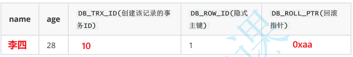 回滚指针将指向该undo log记录的存储地址,下面假设为0xaa