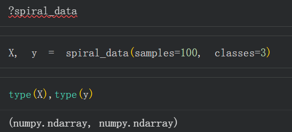 然后导入一些必要的数据,nnfs库的一些细节我已经用libinspector解构过了,细节可以参考前面链接中的Chap1博客