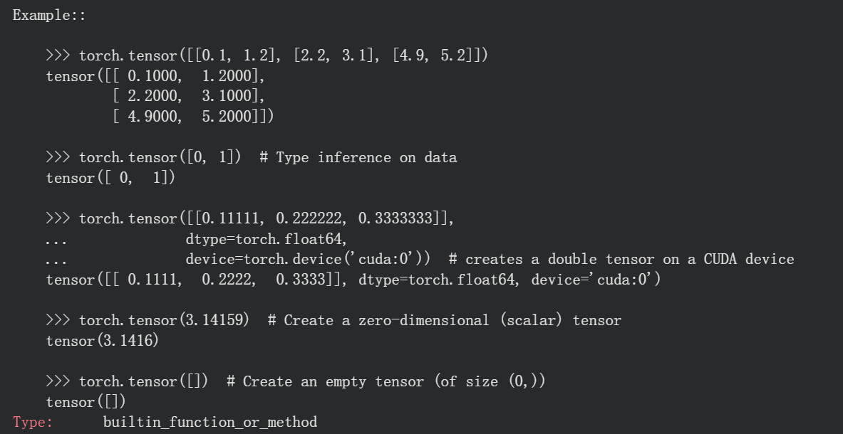 张量是 PyTorch 的基础数据结构(类比 NumPy 的数组,但支持 GPU 加速)。torch模块提供了张量的创建(torch.tensor())、形状变换(torch.reshape())、数学运算(加减乘除、矩阵乘法等)的核心接口。