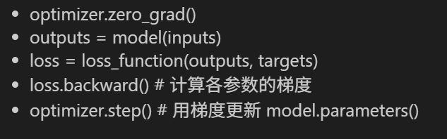后续可通过该模块实例化优化器,传入网络参数和学习率等超参数,在训练循环中调用optimizer.step()完成参数更新。