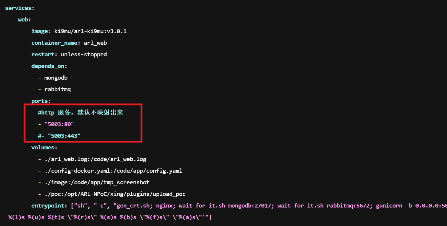 - 因为理论上 ARL 默认是外网 5003 端口映射到内部的 443 端口,使用 https 需要证书