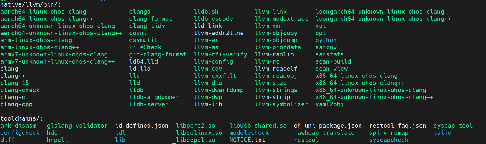 安装完成后,进入target目录,会看到以下核心产物(适配aarch64-linux-ohos架构):