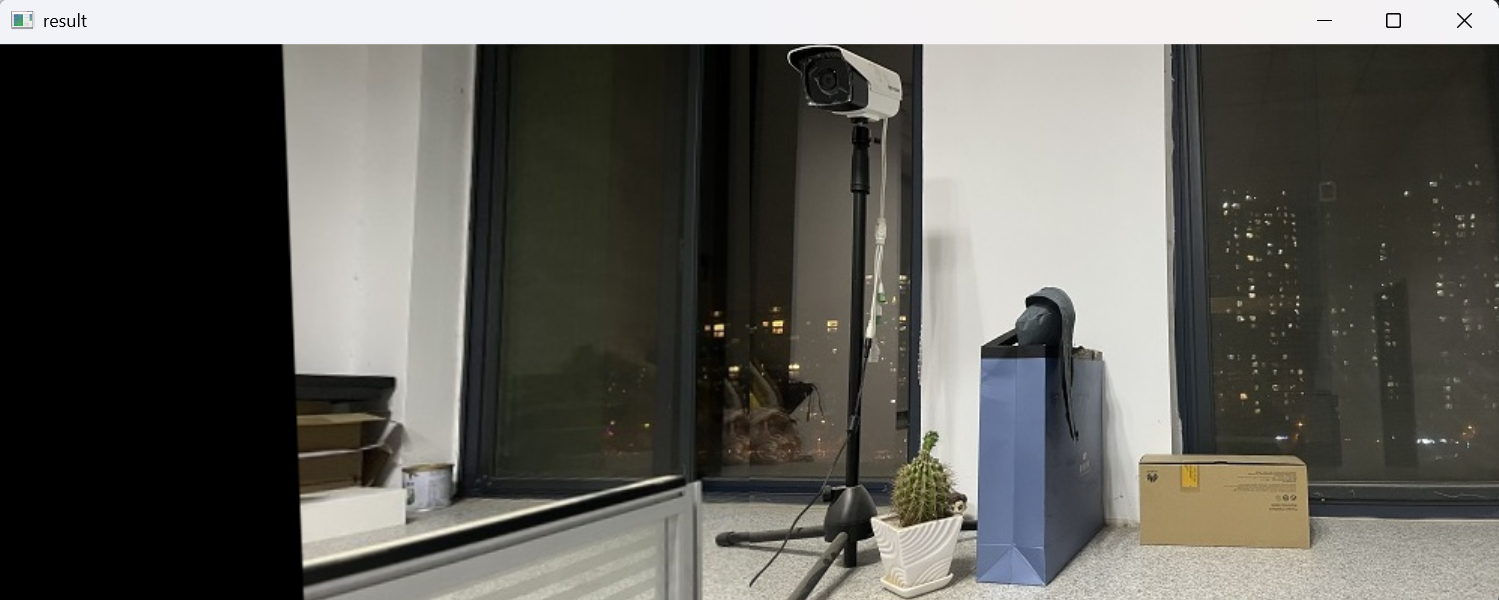 result = cv2.warpPerspective(imageB, H, (imageB.shape[1] + imageA.shape[1], imageB.shape[0]))