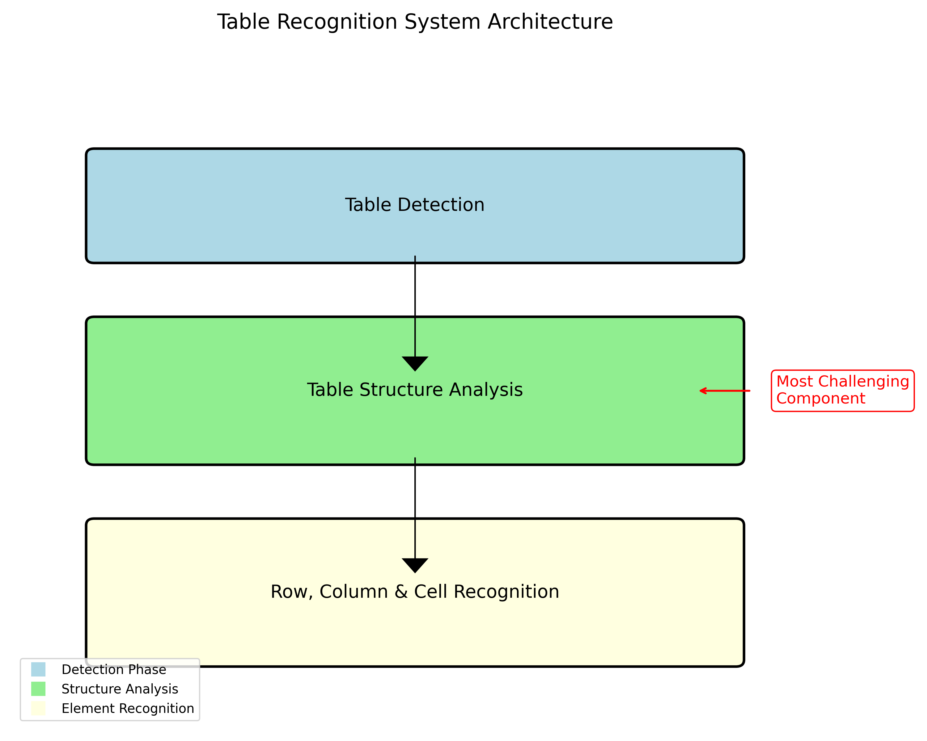 上面的图展示了一个典型的表格识别系统架构,从输入图像到最终的结构化输出,中间经历了多个关键步骤。这种端到端的解决方案在实际应用中表现出色,特别是在处理复杂表格结构时。