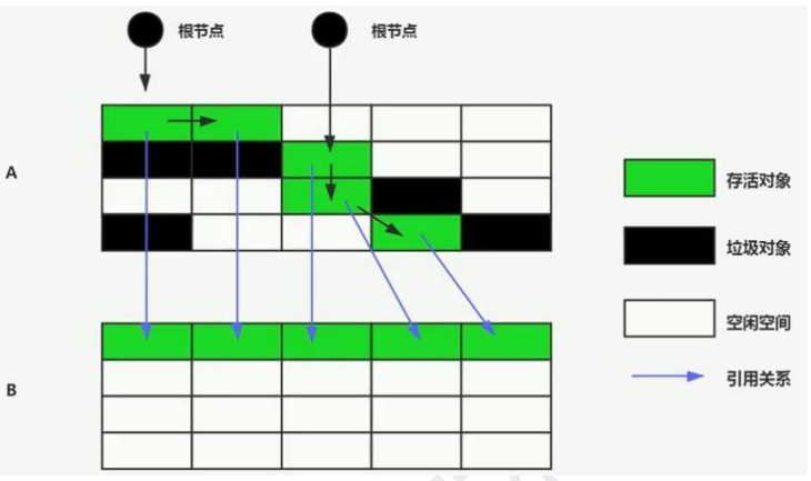 对象会被移动,适合存活对象少,垃圾对象多的情况,特别适合回收新生代的垃圾对象。