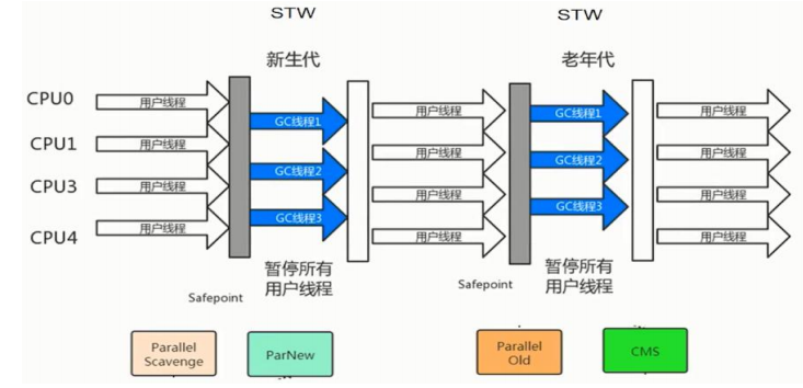 多线程垃圾回收器------------>多个线程进行垃圾回收