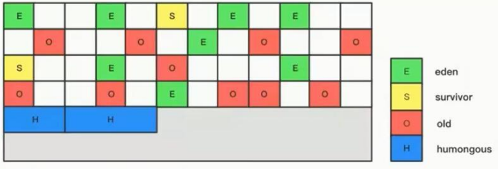 把每个分区又分为若干个小的区域,会对每个小的区域进行跟踪,优先回收垃圾最多的区域