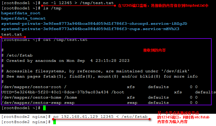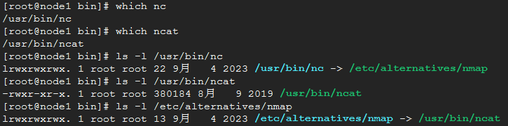 nc/ncat:用于TCP/UDP连接和监听的工具,在CentOS7.9中nc是指向ncat的链接。