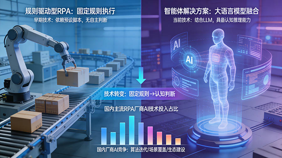 过去的RPA机器人类似于一个兢兢业业、却缺乏灵活性的"流水线工人"------用户需明确指令其点击特定按钮、复制某段文本或执行预定流程,它严格遵循设定、不敢有分毫偏差。然而,如今的RPA技术演进趋势表明,自动化工具正被赋予更强的认知与判断能力,它们不再仅仅依赖预定义的脚本,而是能够理解上下文、处理非结构化数据,甚至做出初步决策。这一转变的根本推动力,源于国内领先RPA厂商在人工智能技术领域的激烈竞争与持续加码,各家纷纷将机器学习、自然语言处理及智能决策能力嵌入产品体系,通过"AI内卷"不断抬高行业的技术门槛与用户体验标准。