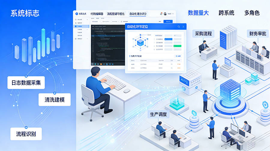 在产品功能层面,弘玑的流程挖掘(Process Mining)能力尤为突出。该功能可基于系统日志数据,自动识别和分析企业运营过程中的各类业务流程,精准定位哪些环节具备自动化潜力。这种能力对于那些业务流程异常复杂、内部流转环节众多,甚至难以通过人工梳理清晰的大型国有企业和集团性央企而言,具有极高的价值------它不仅是效率提升的工具,更成为理清业务流程、推动数字化转型的重要依托。