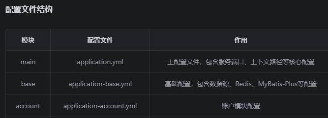 main模块的application.yml通过 spring.profiles.include 指令包含了其他模块的配置文件: