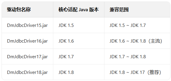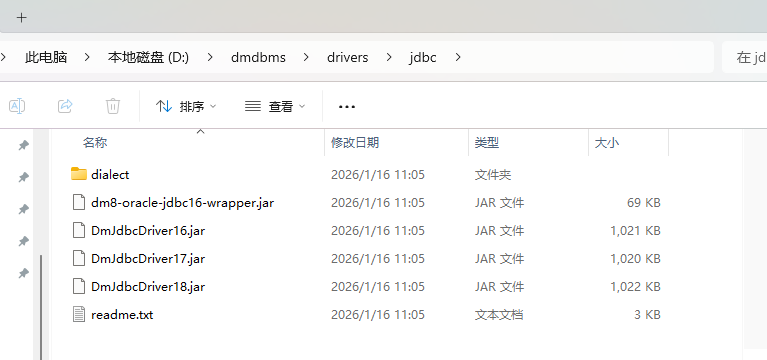 另外,dm8-oracle-jdbc16-wrapper.jar 是 Oracle JDBC 的适配包装,用于兼容部分 Oracle 语法的场景。