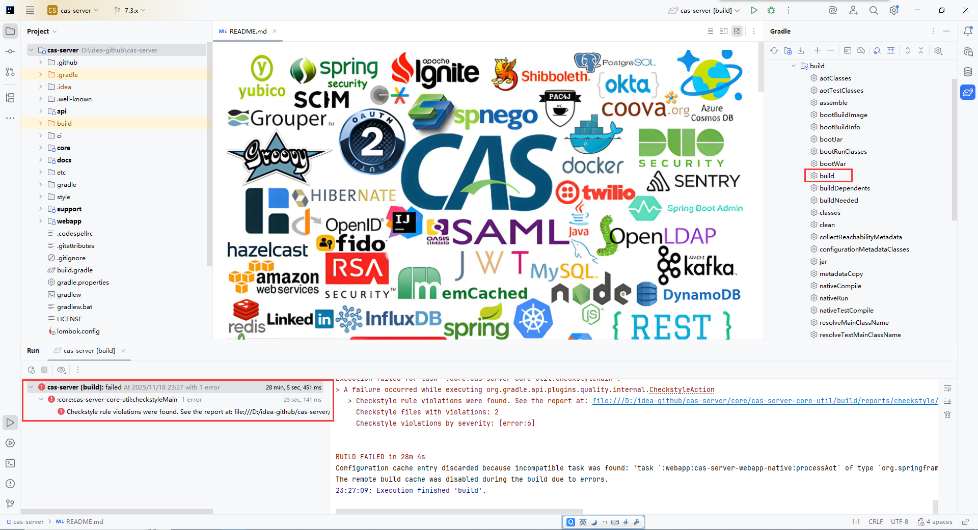 > Checkstyle rule violations were found. See the report at: file:///D:/Program%20Files/myideaworkspace/cas/core/cas-server-core-scripting/build/reports/checkstyle/main.html