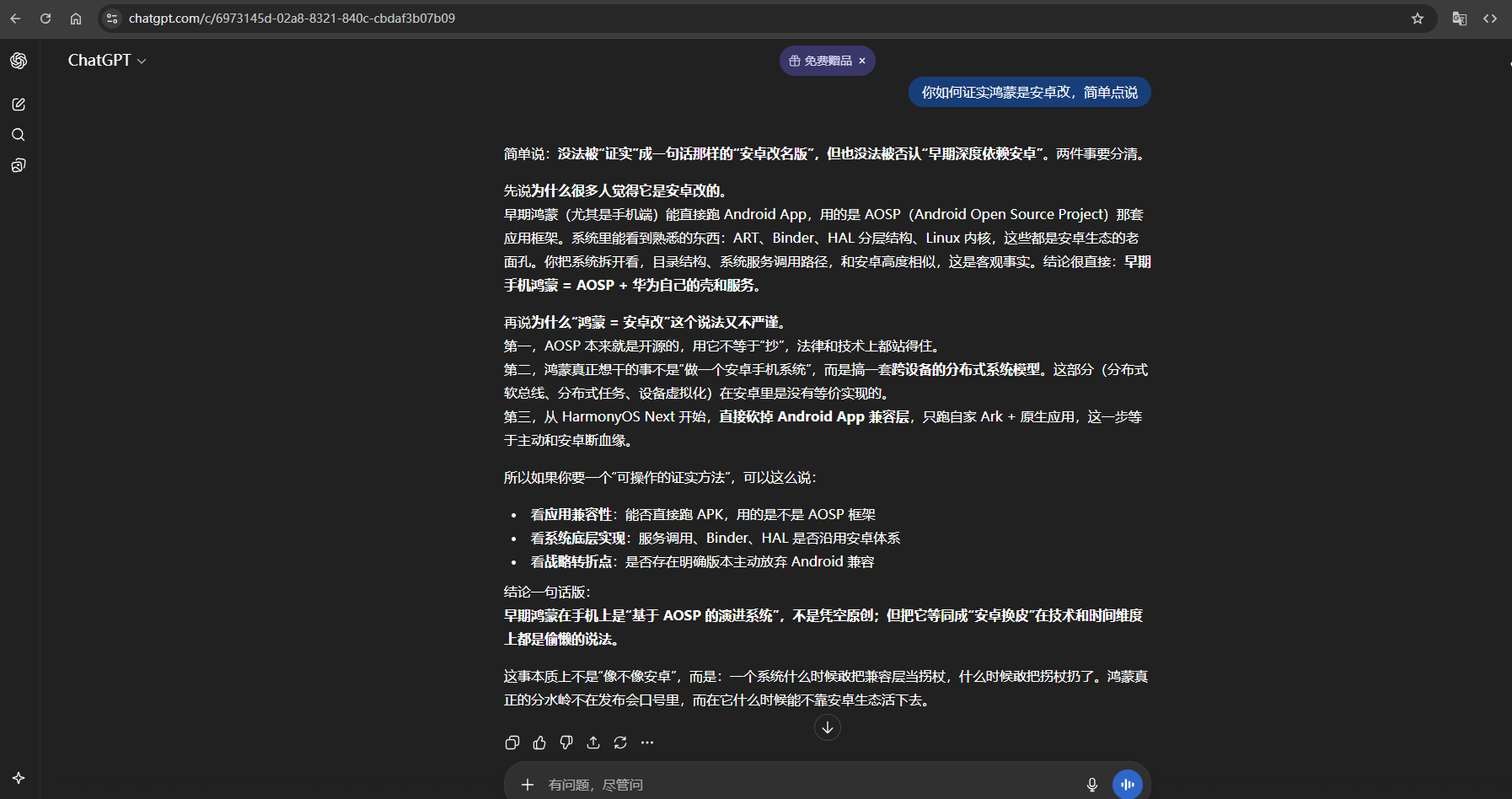 早期鸿蒙在手机上是"基于 AOSP 的演进系统",不是凭空原创;但把它等同成"安卓换皮"在技术和时间维度上都是偷懒的说法。