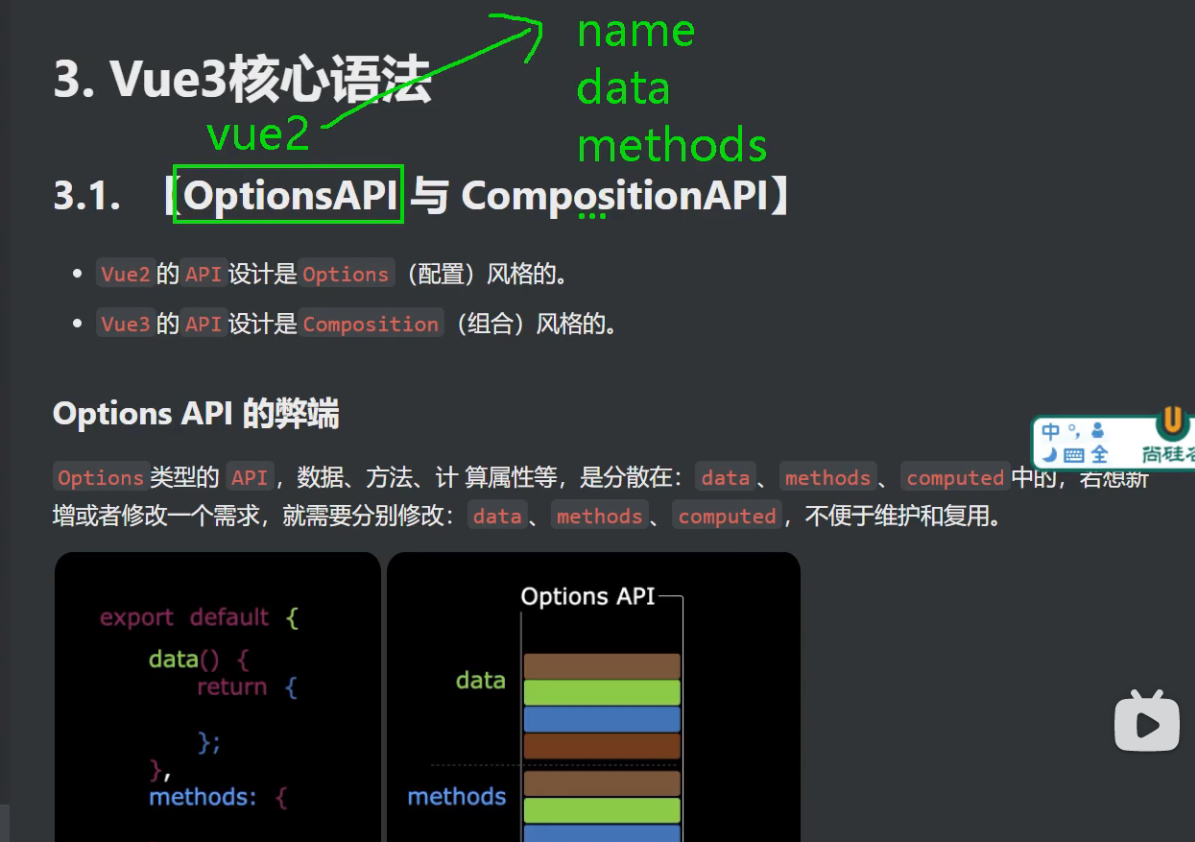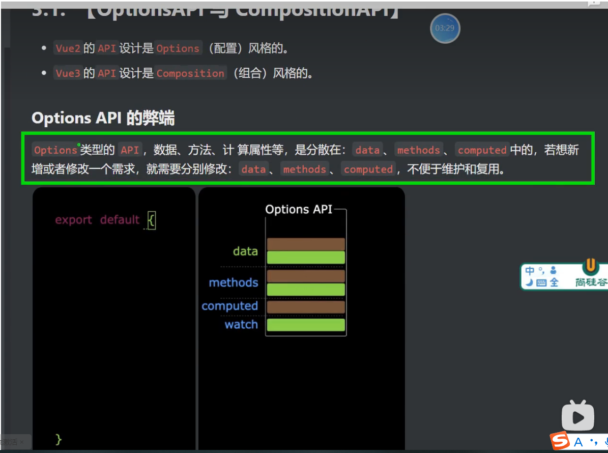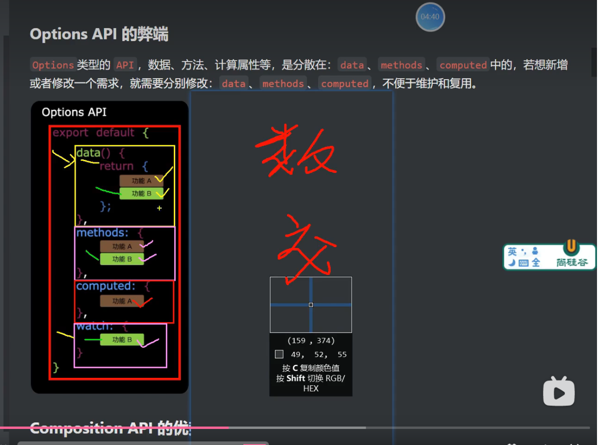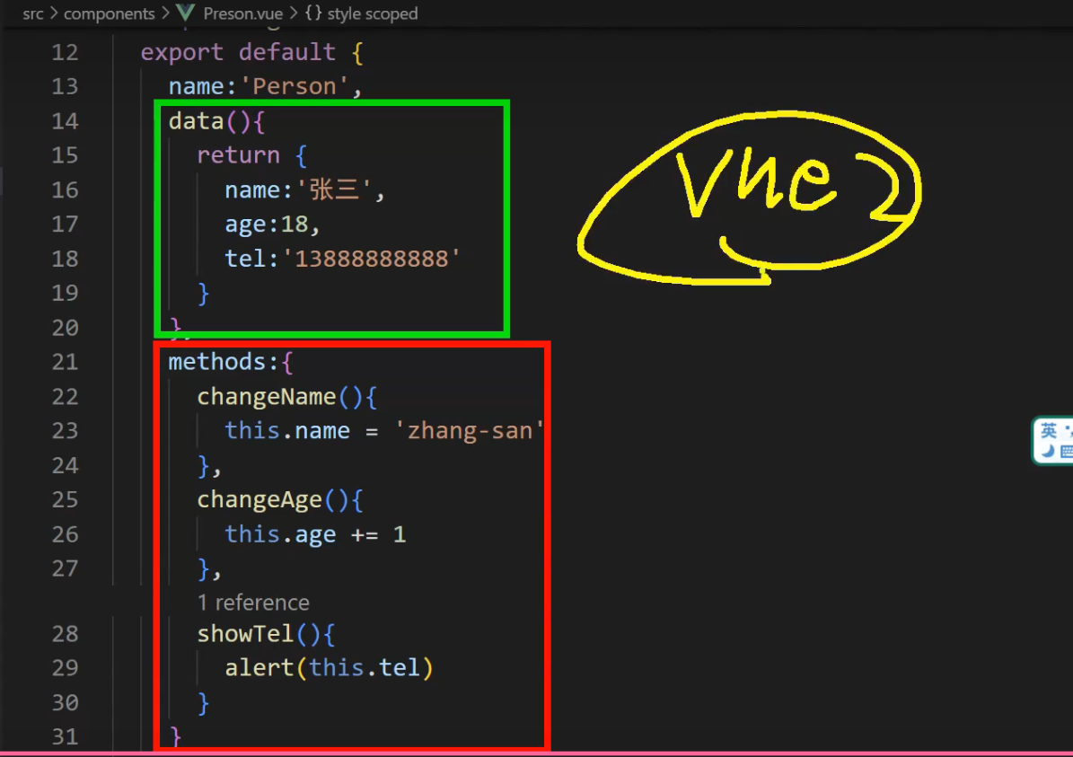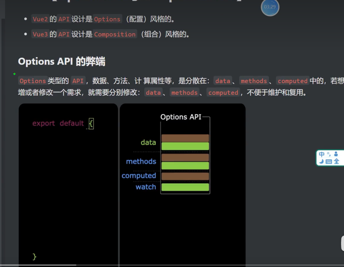 绿色功能的函数包含着:数据,方法,计算属性,监视,包含了很多很多的东西,此时他就集中了,以后要修改绿色功能,你只需要找到该函数就可以修改了,不用在满世界去寻找 data,methods,computed等