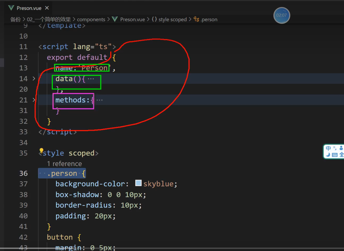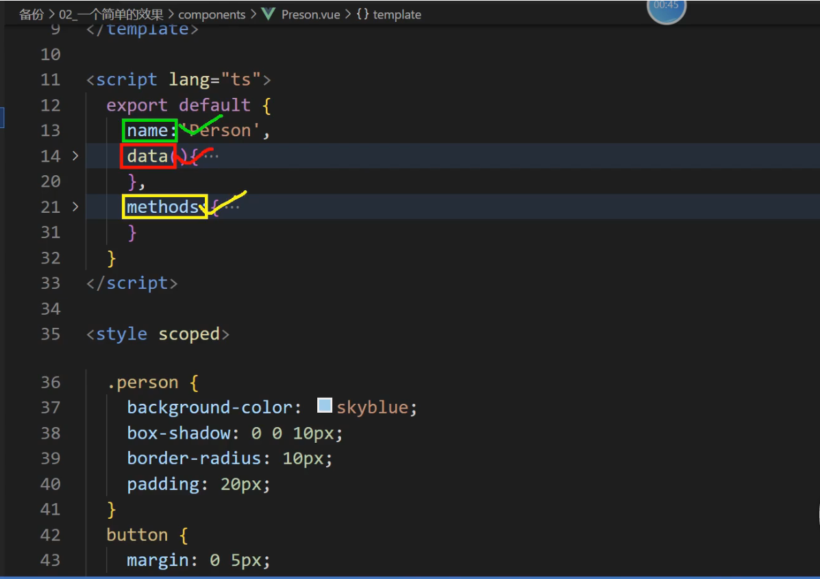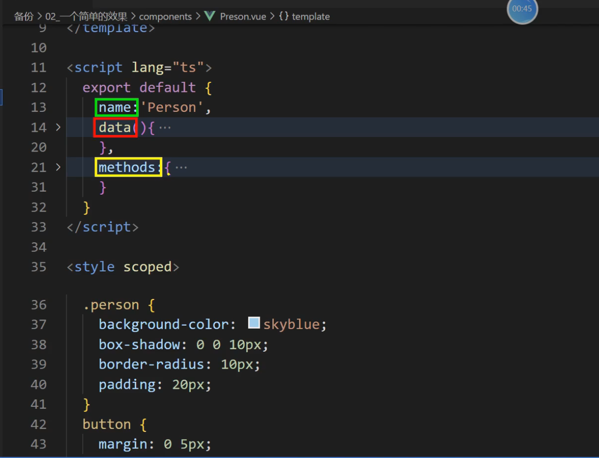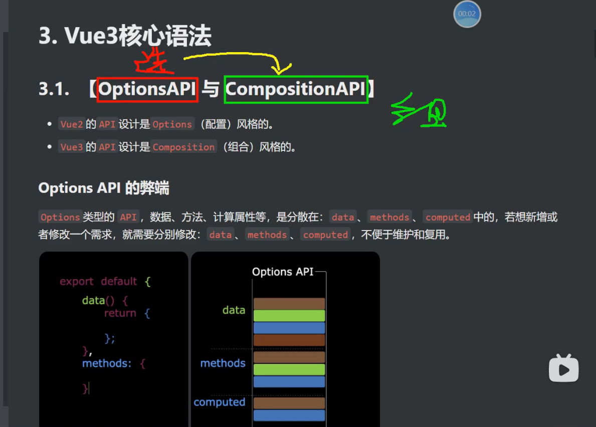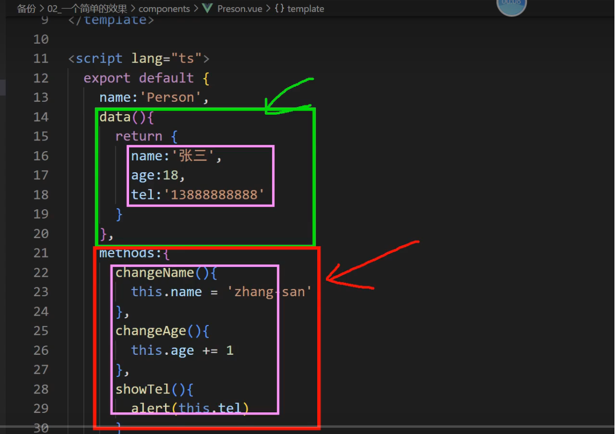 绿色功能的函数包含着:数据,方法,计算属性,监视,包含了很多很多的东西,此时他就集中了,以后要修改绿色功能,你只需要找到该函数就可以修改了,不用在满世界去寻找 data,methods,computed等