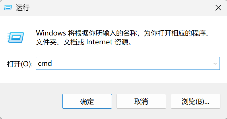 按下 Win + R 组合键,输入 cmd 即可打开系统终端。