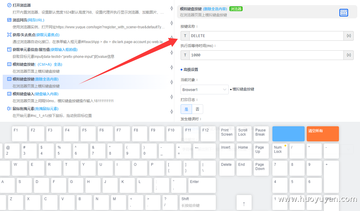 6、模拟键盘按键, 删除(Delete)全选内容