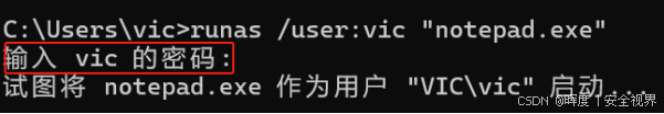 | 以普通用户运行记事本 | runas /user:user01 "notepad.exe" |