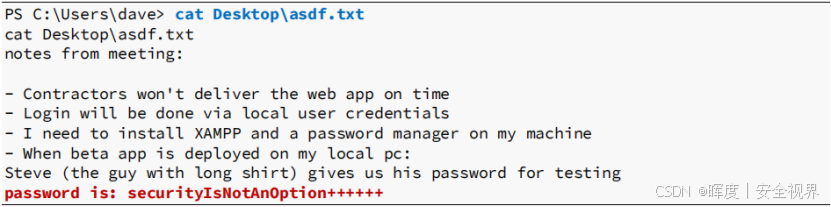 在 dave 用户桌面搜索敏感文档,发现 asdf.txt 文件。 |