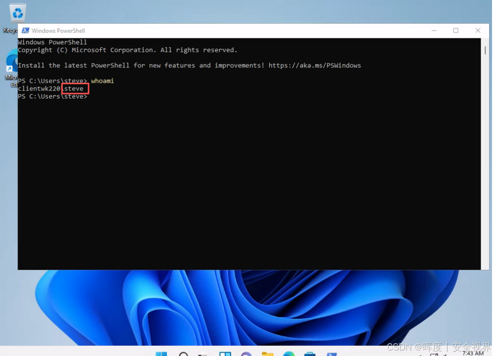 结果: 成功以 steve 身份登录系统,获得了一个全新的操作环境。
