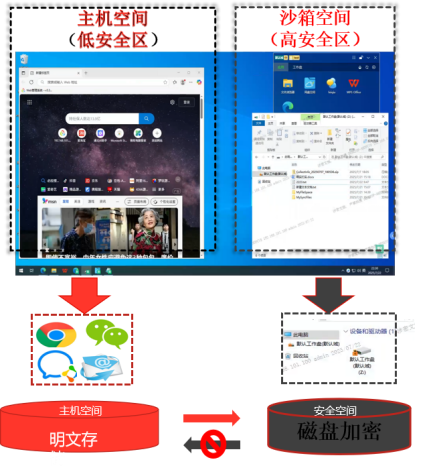 深信达SDC沙箱基于"环境加密 + 内核级防护"的设计理念,区别于传统基于文件后缀的加密方式,从系统底层实现全方位保护,其技术实现主要包括以下三点: